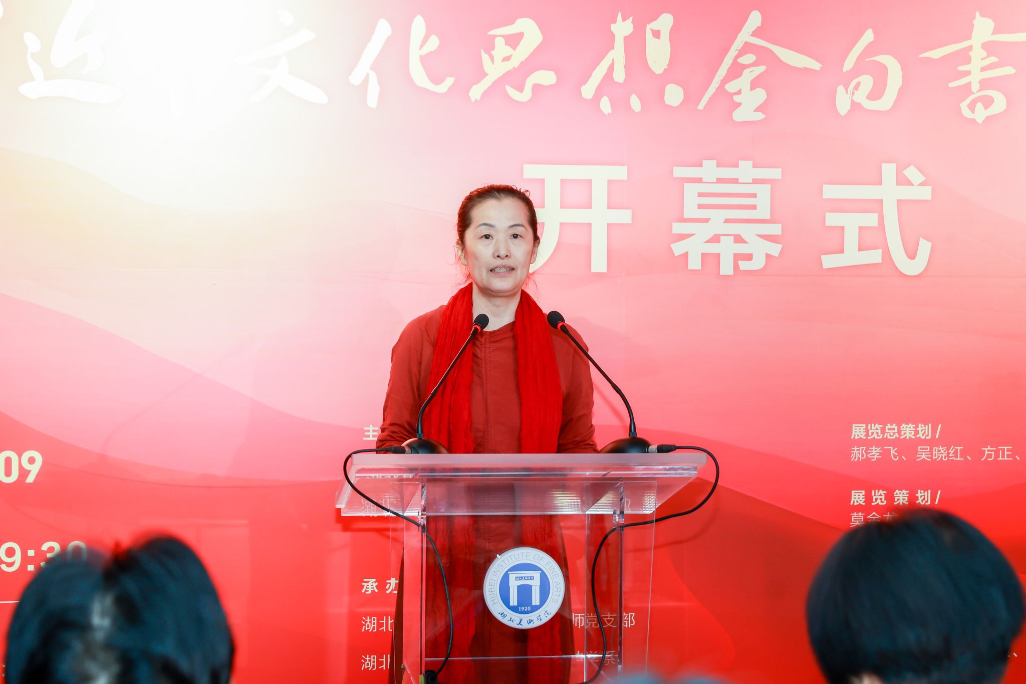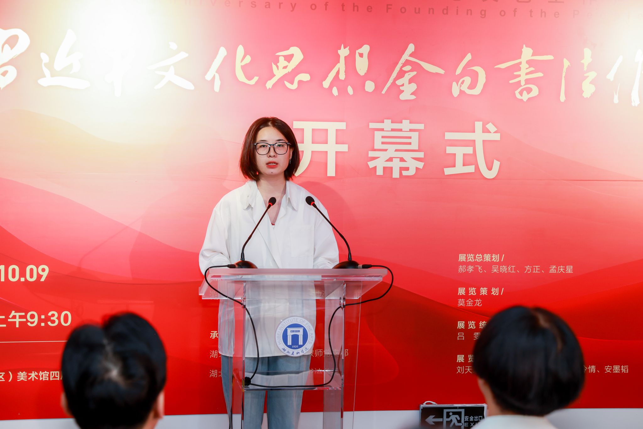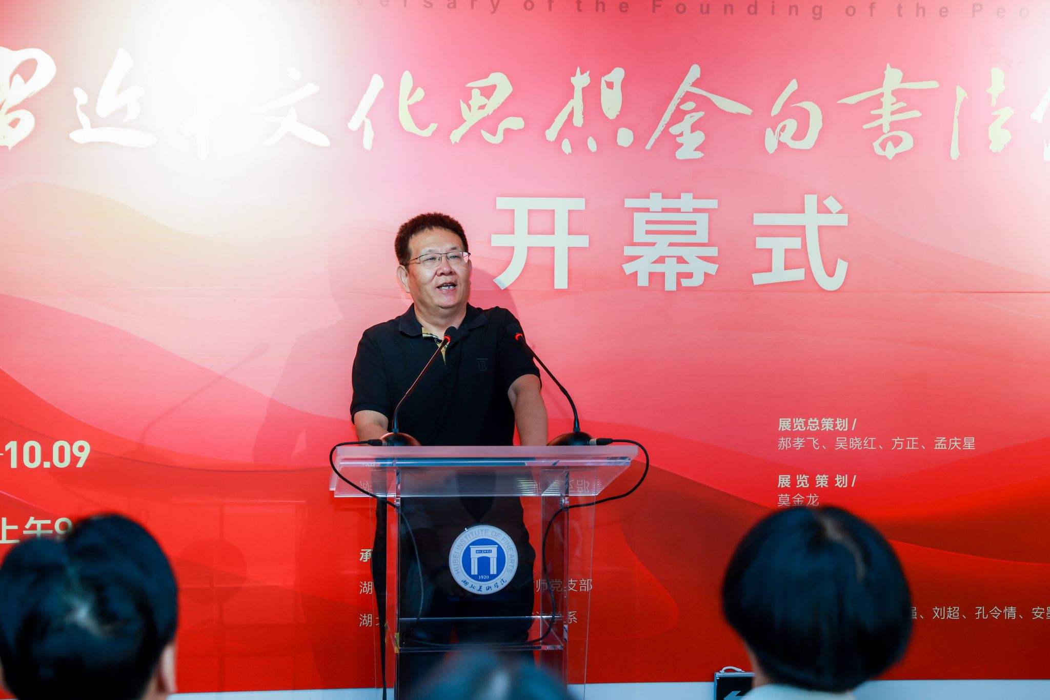 湖北省书法家协会主席、taptap点点体育书法学系主任孟庆星教授在致词中谈到:本次展览以书法的形式展现习近平文化思想金句,能够让人们更加直观地感受总书记重要思想的深刻内涵和精神力量。将严肃的政治话语转化为具有艺术感染力的表现形式,更有助于推动习近平新时代中国特色社会主义思想深入人心。