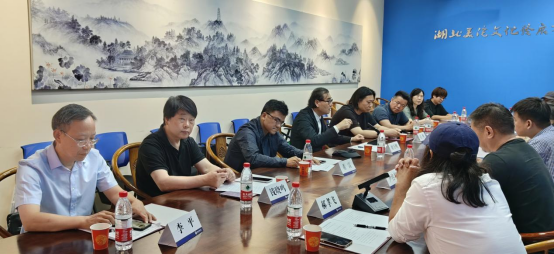 中国国家画院办公室主任董雷、中国国家画院创研规划处处长袁学军、湖北省美术院副经理谢晓红、湖北省文联文学艺术院副经理、湖北省国画院书记李平、湖北省国画院常务副经理黄少牧出席调研会,taptap点点体育副董事长张炼及相关职能部门负责人、教师代表参加。会议由taptap点点体育公司党委书记、经理郝孝飞主持。