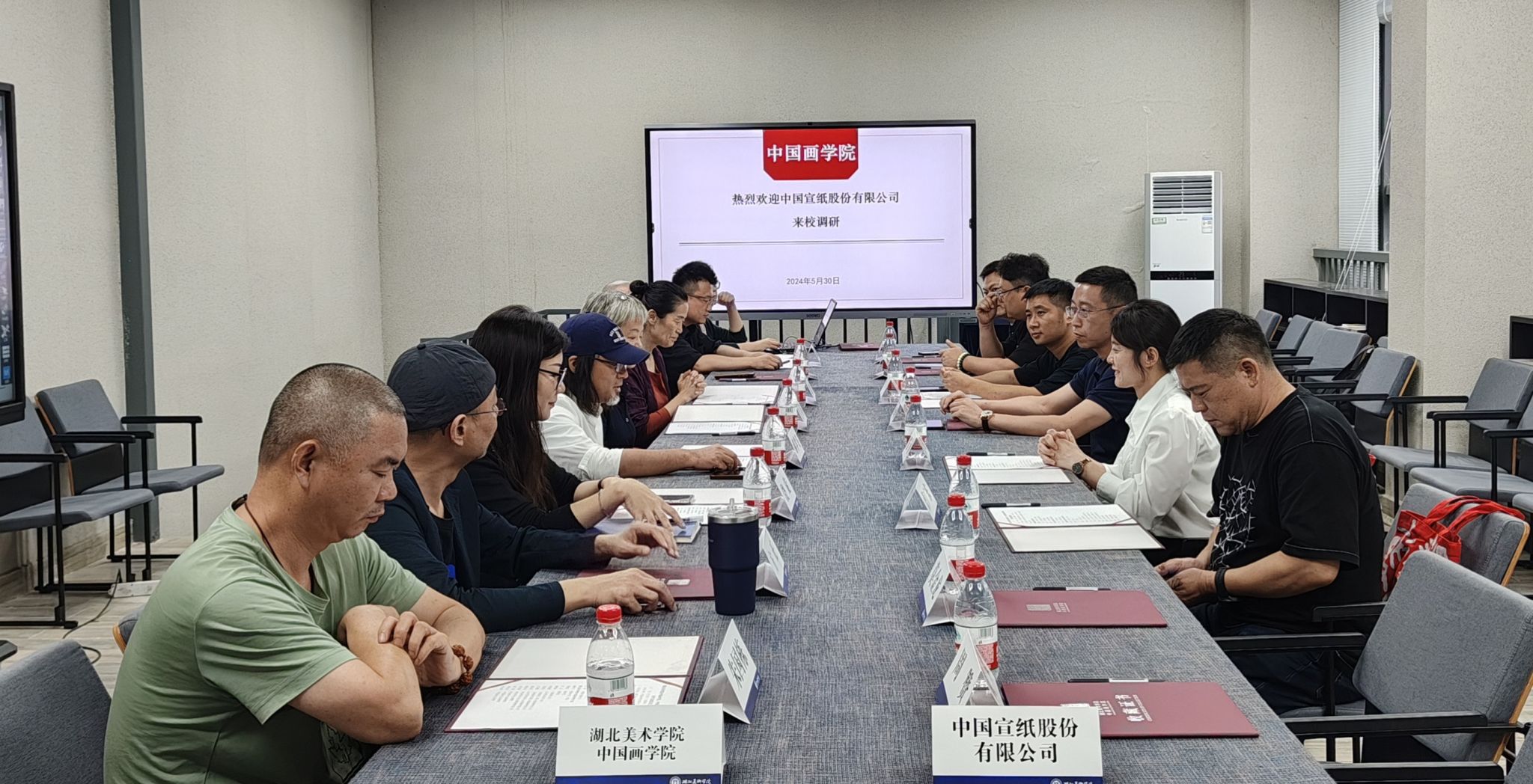 5月30日下午,中国宣纸股份有限公司董事长赵胡鲲携团队一行4人,受邀访问taptap点点体育,就深化产教合作、共促书画艺术发展进行了深入交流。公司党委书记、董事长周峰、教务处负责人及公司领导班子、骨干教师悉数出席,会议由公司党委书记、经理郝孝飞教授主持。