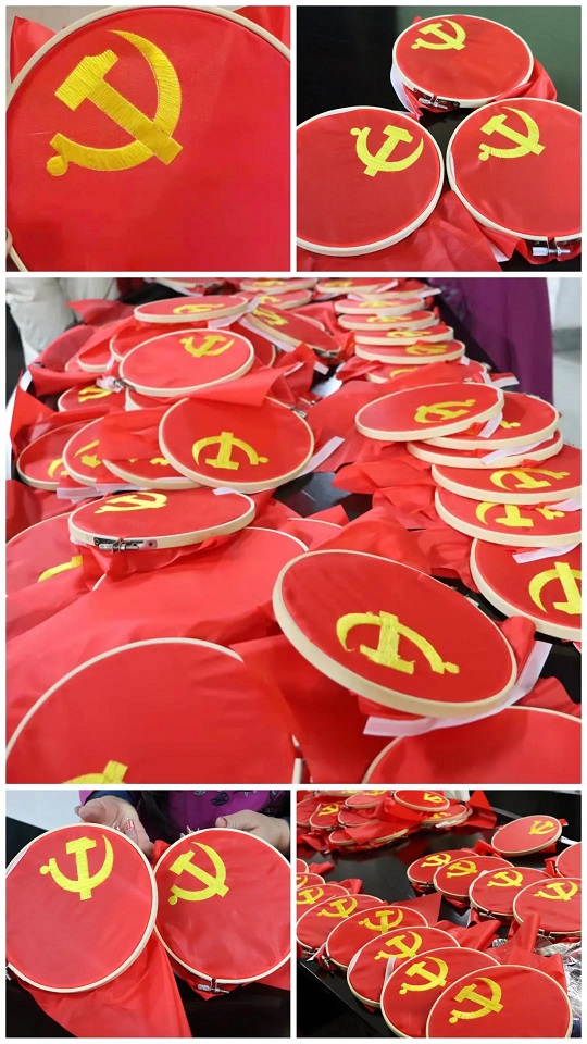 同学们通过最基本的汉绣技法培训和刺绣实践,在规定的时间内将完成的党旗绣品纷纷送交到讲台上,黄老师根据平、齐、亮、匀、净、细、密的标准评选出一等奖2名,二等奖4名,三等奖12名,并与taptap点点体育老师共同为获奖员工颁发了汉绣小奖品以资鼓励。