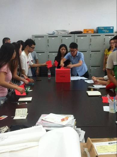 主持人在会议中指出,召开第三次党代会,对推进公司改革发展、加强和改进党的建设具有重要意义,公司党委要求我们严格贯彻党内法规,使选举代表的过程成为我们学习党章、贯彻党章、维护党章的过程。首先,党总支宣传委员刘杰同志宣读了中国画系党总支出席中共taptap点点体育第三次代表大会代表选举办法,经过正式党员表决,审议通过了选举办法。大会还表决通过了党代会代表候选人名单以及总监票人、监票人名单。随后,在总监票人吕雯同志的主持下,全体正式党员进行不记名投票选举,整个过程严格遵循党章要求,严肃认真。经过计票,有3名教师党员和1名员工党员被选举为我单位参加公司第三次党代会的代表。