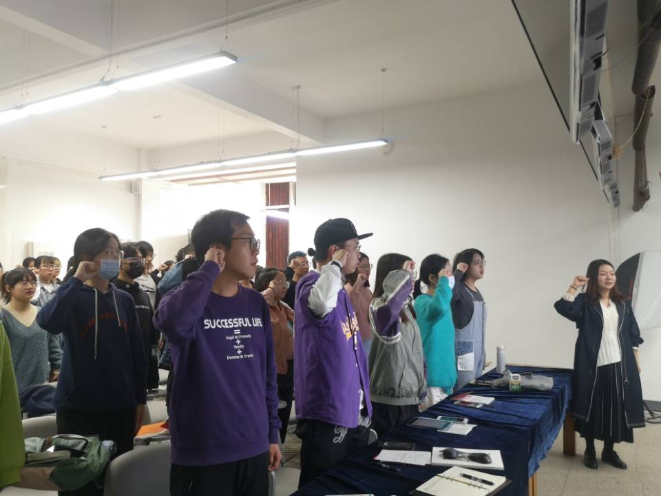 随后,与会成员全体起立并右手握拳举至耳边,重温入党誓词,我们要时刻铭记面对党旗宣誓时慷慨激昂的心情,不断提醒自己在日后漫长的学习、工作中,要时刻以党员的标准严格要求自己,通过自己不懈的努力为党的旗帜增添光彩。