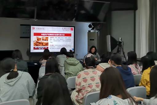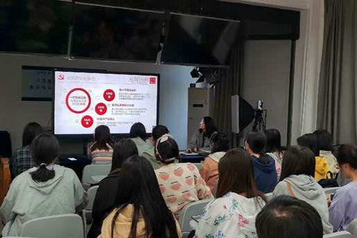 随后代思结合我系的专业性,为同志们播放了《画说党史》的历史记录短片,将党的历史和我们所学专业相结合,为大家的专业创作提供了思路。