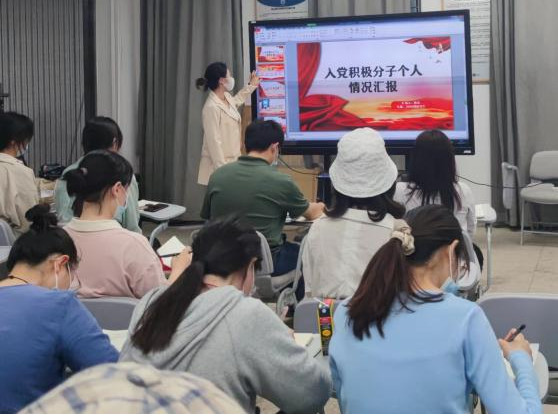 支部书记王鹤聪老师首先向大家说明会议的议程。并介绍了经过党组织培养教育和考察的七位积极分子:邓淼、陈果、张玉印、张辉、项凡瑜、胡佳琪、崔盛智睿。