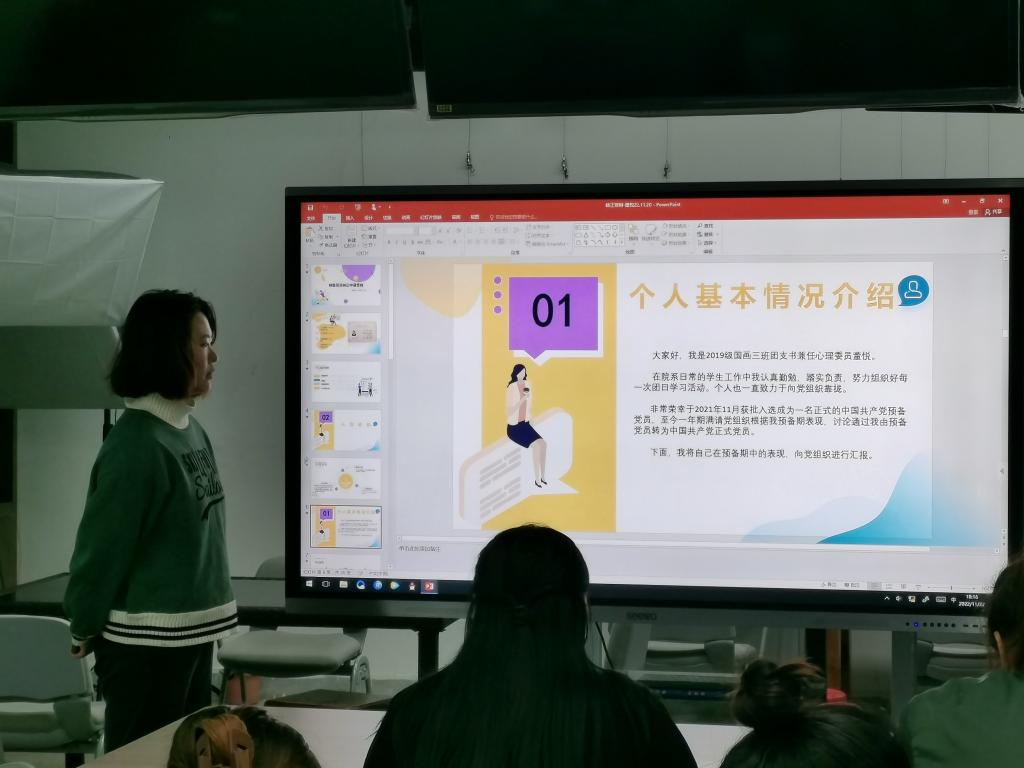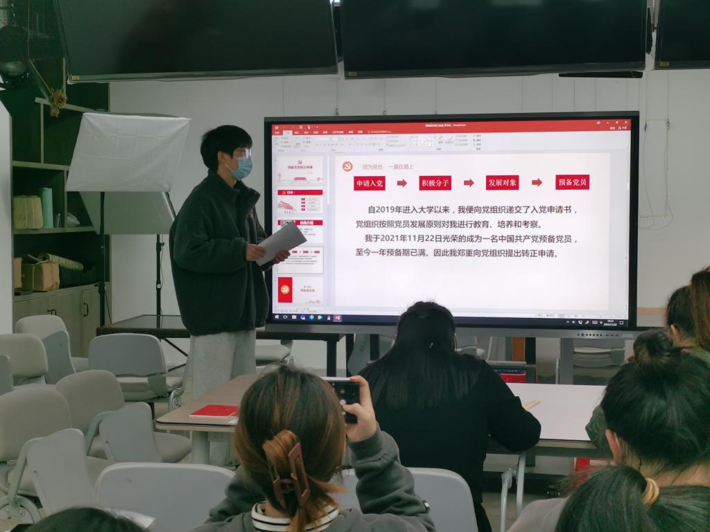 党支部书记罗雅雯老师宣读预备党员转正名单。五名预备党员董悦、王冰心、罗鸿龙、罗文轩、赵乐茹同志分别向全体党员同志汇报了自己在预备期一年期间的思想、学习、工作情况,并向组织表明自己的决心及对按期转正的期待。几位同志的入党介绍人也向支部成员介绍其在预备期间的表现情况,并对其能否成为正式党员表明意见。紧接着支部委员会介绍预备党员在预备期间的教育考察情况,与会党员也纷纷发表意见,对预备党员能否转正进行充分讨论。讨论结束,采取无记名的方式进行投票表决。经投票表决,到会的5名正式党员一致同意,董悦、王冰心、罗鸿龙、罗文轩、赵乐茹五位同志按期转正为中共正式党员。