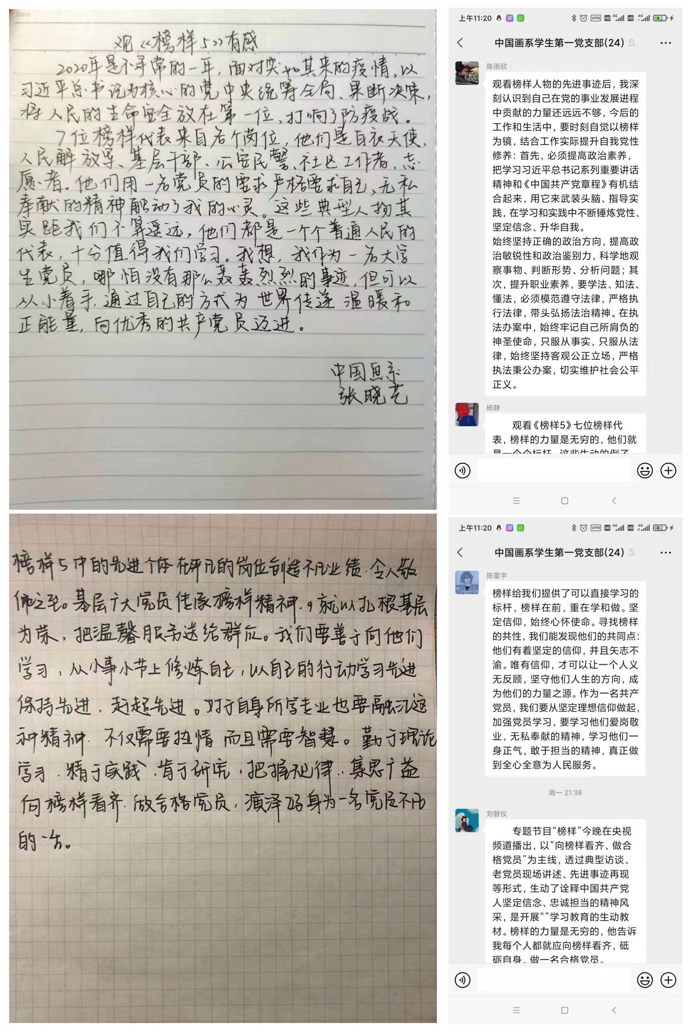 收看《榜样5》专题节目后,大家都深受鼓舞,纷纷表示在抗击新冠肺炎疫情的过程中,基层党组织发挥战斗堡垒作用,党员干部牢记人民至上、生命至上的原则,冲锋在抗疫一线,彰显了中国共产党的精神与品格。在今后的学习、生活、工作中,将以先进人物为榜样,忠于组织、勇于担当;以榜样精神为引领,不忘初心、牢记使命,发挥好共产党员的先锋模范作用,以饱满的热情和积极的行动为党和国家事业建设添砖加瓦。
