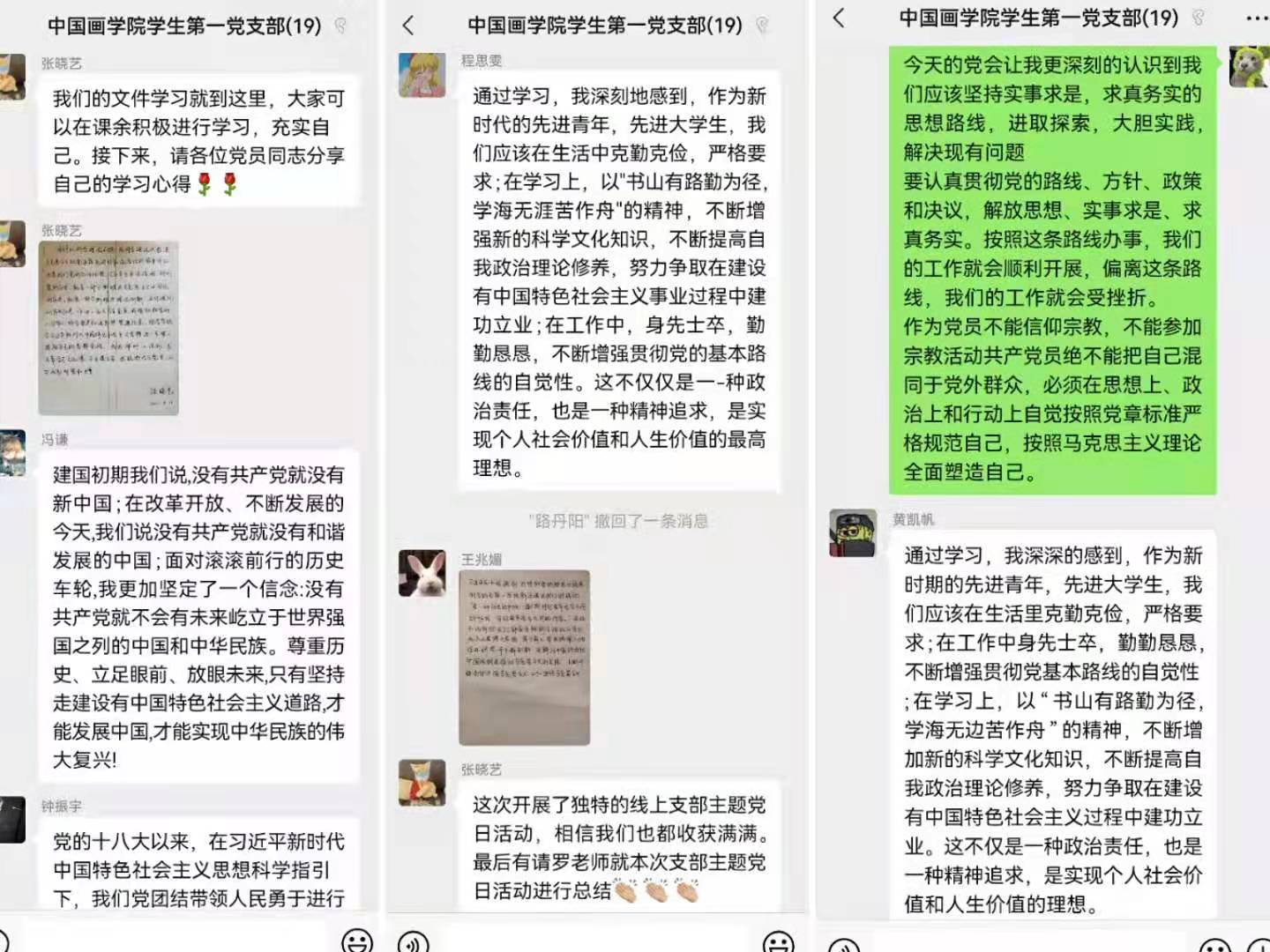 会后,辅导员罗雅雯老师对此次支部主题党日活动进行总结。首先对本次支部主题党日召开的效果进行了肯定,指出因为暑假原因,本次支部主题党日选择在线上进行,原本担心效果不好,但参与分享的党员同志们都能认真提前准备材料,做好准备并用多种形式给其他同学进行分享。同时也对员工第一党支部的党员同志提出期望,希望大家可以一如既往严格要求自己,认真学习党史,党章和党的各项方针和条例,养成良好的学习习惯,将集中学习和自学相结合,重视政治理论学习。