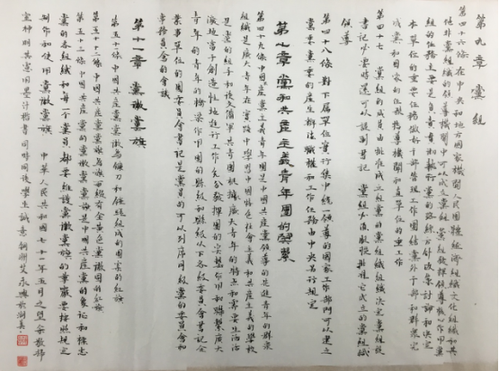 党章是党员的第一课、必修课。党章刻画了合格党员的标准,明确了党员的权利和义务,既为我们履行职能使命、发挥党员作用提供了遵循,也为评判党性“纯度”、丈量品德“高度”提供了度量和标尺。抄写党章、学习党章,让每一个党员在学习中深刻领悟,才会真正树立起对党章的尊崇之心,才会在行动中产生遵守党章的自觉动力。我系将此次“手抄党章”特色活动作为“两学一做”学习教育的重要内容,要求员工党员学好党章、抄好党章,时刻提醒每一名党员都要清楚自己的定位,既是普通群众中的一员,又是光荣的共产党员,牢记共产党员的职责使命。