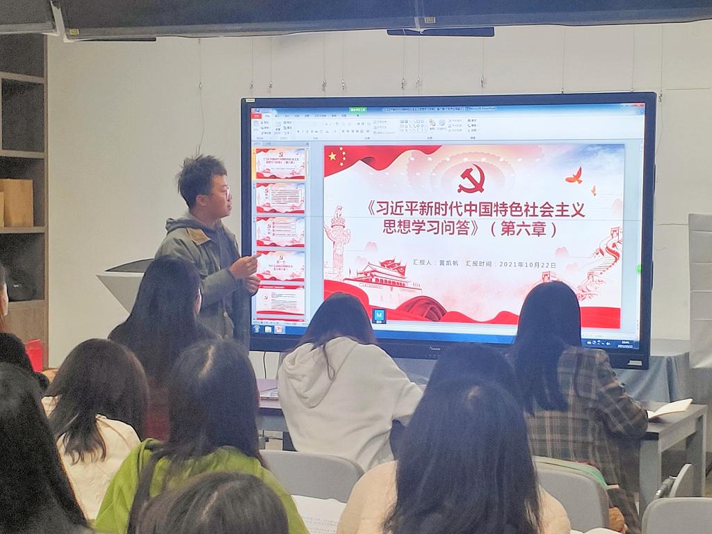 最后,支部书记罗雅雯老师对本次党日活动进行总结。她表示,希望党员同学们能通过学习习近平总书记重要讲话精神,使红色基因进一步融入血脉、浸入心扉,把伟大建党精神继承下去、发扬光大,争当中华民族伟大复兴的先锋力量,让青春年华在为党、为国家、为人民的奉献中焕发出绚丽光彩。