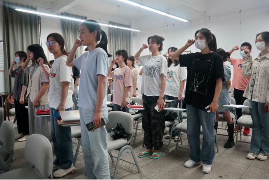 此次会议严格按照党组织接收预备党员程序进行,通过发展对象发言、入党介绍人发言、与会成员发表意见、经无记名投票表决,庞汶琪等六名发展对象转预备党员的决议全票通过,同意接收为预备党员。并在老党员带领下集体宣读入党誓词。