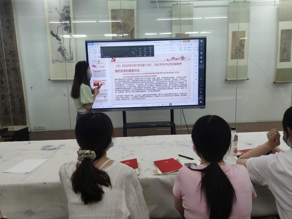 接着,由刘琪同志带领大家进行集中学习,主要学习了2022年4月8日,习近平总书记在北京冬奥会、冬残奥会总结表彰大会上的重要讲话;2022年4月10日至13日,习近平总书记在海南考察时发表的重要讲话;2022年4月15日,习近平总书记在中央政治局进行第二十八次集体学习时的重要讲话;2022年4月21日,习近平总书记在博鳌亚洲论坛2022年年会开幕式上发表的重要讲话等学习内容。