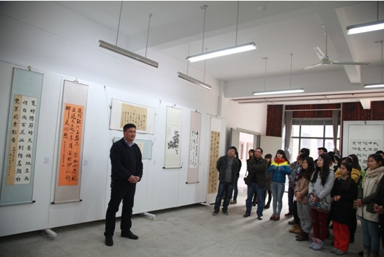 (通讯员 张涛)为了丰富同学们的校园文化生活,传承我国悠久的文化精髓,营造良好的艺术氛围,加深同学们对中国诗歌,书法、绘画艺术的了解,在院系各领导的大力支持下12月6日中国画系“一系一品”原创诗歌书画作品展拉开序幕。展览开幕式于A1教学楼103展厅举行。本次活动得到了各级同学的热情参与,共展出书画作品四十余幅,每幅作品所表现的主体内容均为中国画系员工原创诗歌。同学们将原创诗歌通过书法、国画的具体形式表现出来,以此表达人生追求,抒发个人情感,传承和弘扬民族传统文化的坚定信念。