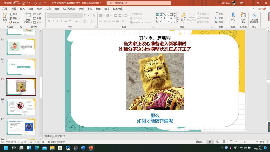各班班长又分别从防诈骗、心理健康两个方面提出了相关问题并提出解决方案。各班班长提出,凡是要钱的都是骗子,并让同学们牢记八个凡事;在心理健康方面则总结了健康问题的主要来源,并给同学们提出了解决心理焦虑的意见。