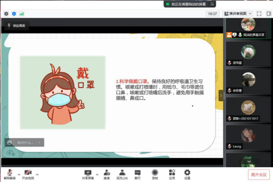 各班班长提出了现在疫情的防控问题,提醒同学们注意个人防疫、科学佩戴口罩等疫情防控知识。