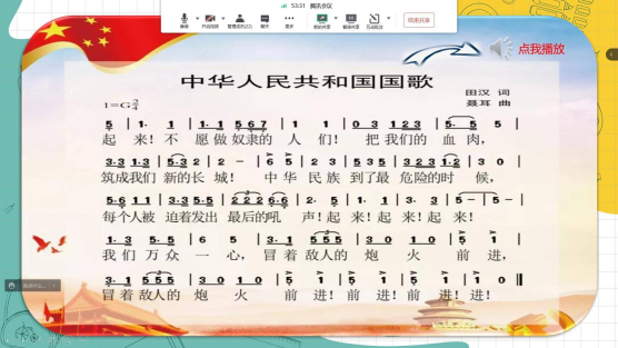 会议伊始,各班班长组织同学们齐唱国歌,加强了同学们的责任感与使命感。