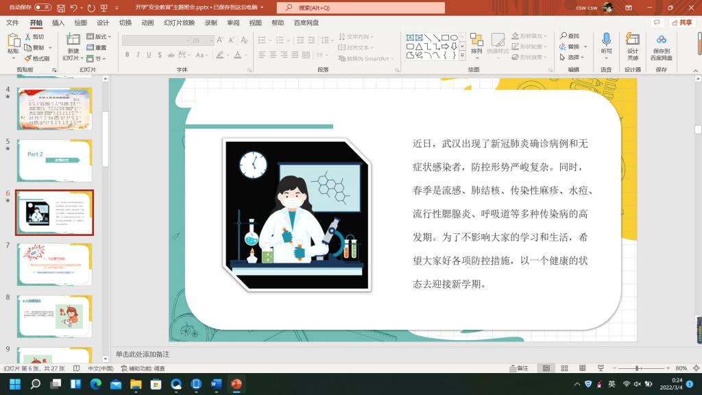此次安全教育主题班会加强了疫情期间同学们的防控意识,提高了同学们对自身安全的保护意识,并对同学们的身心健康提出了有效建议,使安全教育落到了实处。
