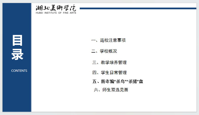 接下来进行了新生安全教育,涉及到同学们的人身安全和心理健康教育两个方面,特别强调了网络诈骗,希望每一位同学保护自己的人身和财产安全,此外,提醒同学们要关注自己的心理健康,主动学习心理健康知识,
