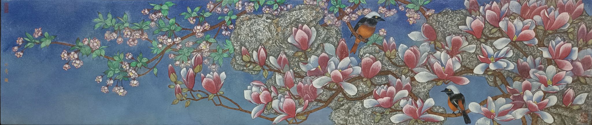 《玉堂争春》 材质 纸本重彩 年份 2022年 尺寸 40㎝×180㎝