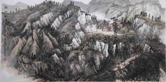 作品《陇山秋居图》水墨纸本 68x139cm 2010年