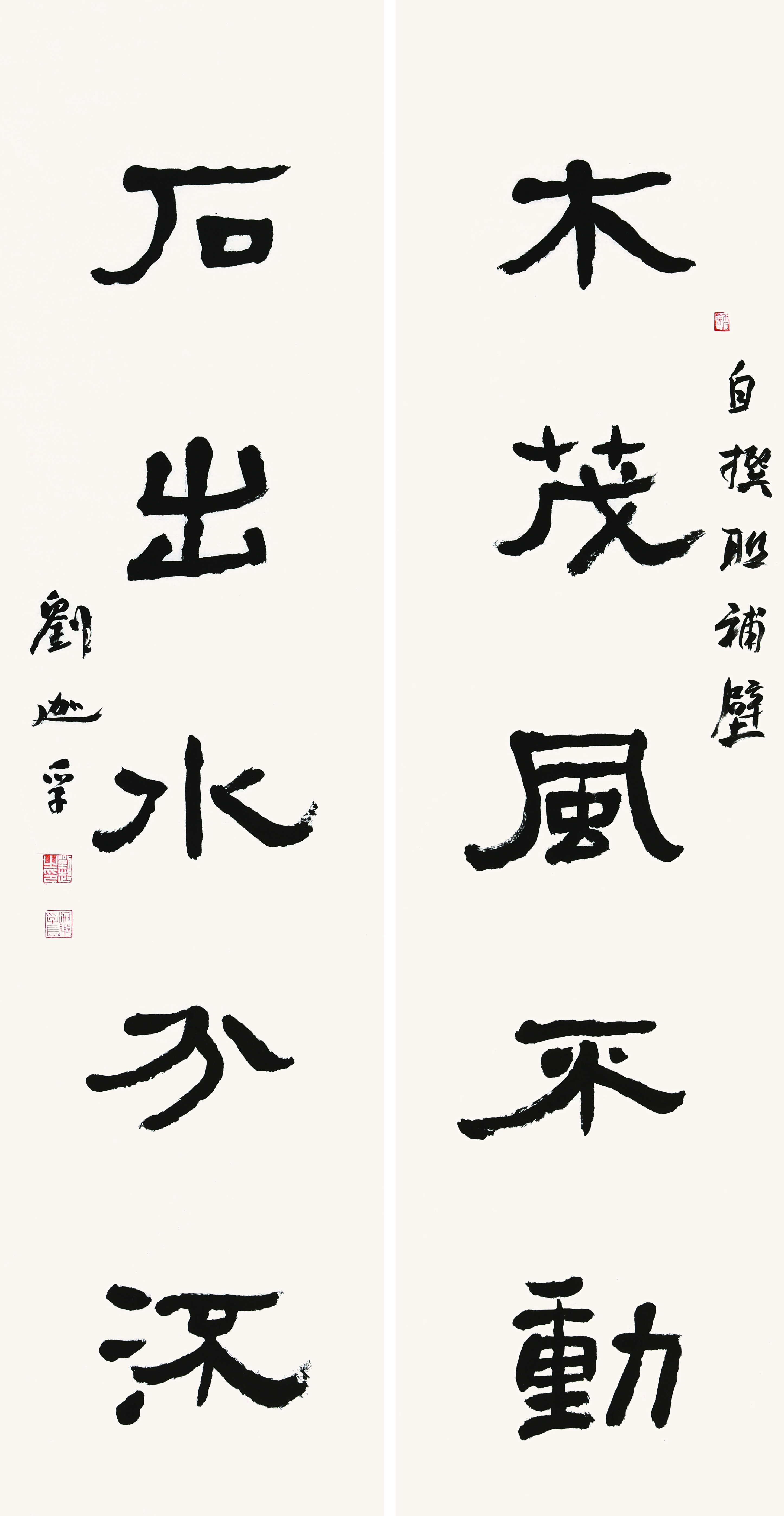 《木茂石出五言联. 138cm×34cm×2 2023年