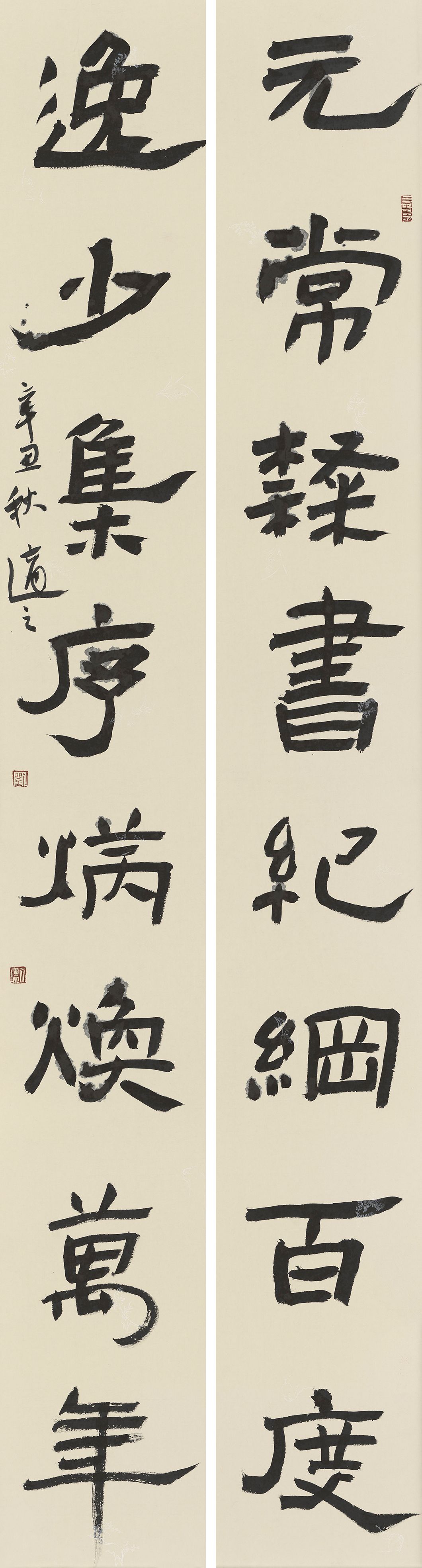 隶书 《元常 逸少》联 纸本 187cm*24cm 2021年