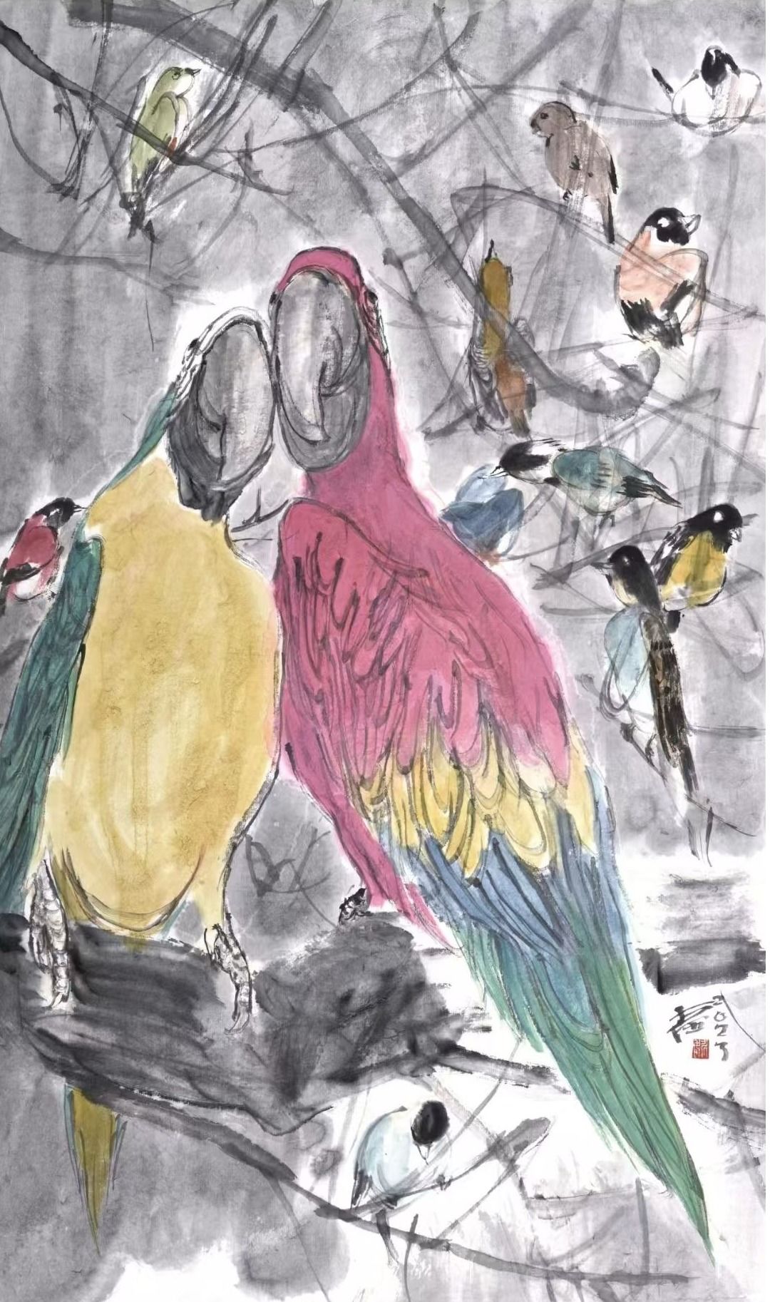 获首届全国电视大赛写意花鸟画金奖