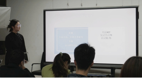 张晓艺同学讲述了自己英语和政治的备考过程,增强同学们对考研时间的规划意识;宋颖同学着重强调了“身体是革命的本钱”,提醒同学们在考研过程中要劳逸结合;方文同学则从考研心态入手,鼓励同学们要有背水一战、破釜沉舟的勇气,尽全力去备考;钟振宇同学围绕专业课进行分享,讲述了考研绘画要求和绘画方法。